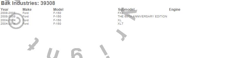 Brand: BAK IndustriesPart Number: 39308Tonneau Cover Type: Black - Vinyl Top w/ Aluminum Underside - Leather Grain FinishUPC: 819275022811