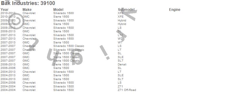 Brand: BAK IndustriesPart Number: 39100Tonneau Cover Type: Black - Vinyl Top w/ Aluminum Underside - Leather Grain Finish - Rails Mounted Low Enough To Use Standard C ClampsUPC: 819275022422