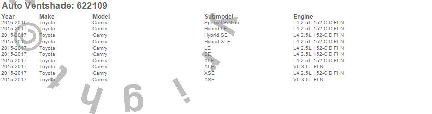 Below is an abbreviated list of applications for the Aeroskin Chrome Hood Protector.Camry, Toyota, 2017, 2016, 2015