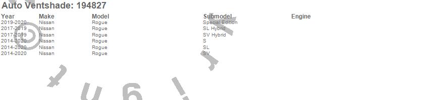 Below is an abbreviated list of applications for the Ventvisor In-Channel Deflector 4 pc..Rogue, Nissan, 2020, 2019, 2018, 2017, 2016, 2015, 2014