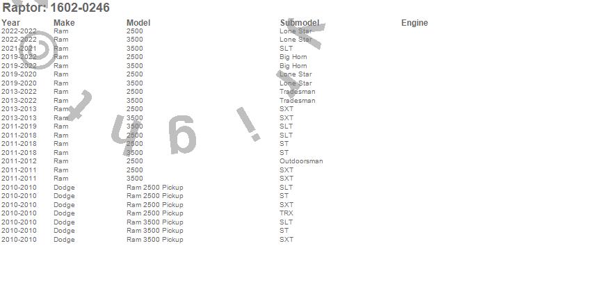 Brand: RaptorPart Number: 1602-0246Nerf/Step Bar Type: Stainless Steel - 5 in. - Cab MountUPC: 813443020326