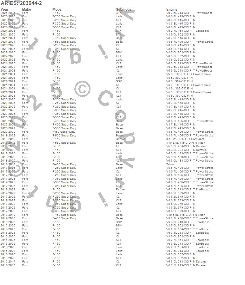 Below is an abbreviated list of applications for the 3 in. Round Side Bars.F-150, F-250 Super Duty, F-350 Super Duty, F-450 Super Duty, F-550 Super Duty, F450 Super Duty, Ford, 2026, 2025, 2024, 2023, 2022, 2021, 2020, 2019, 2018, 2017, 2016, 2015