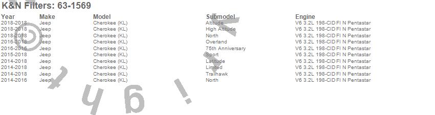 Below is an abbreviated list of applications for the 63 Series Aircharger Kit.Cherokee, Cherokee (KL), Jeep, 2018, 2017, 2016, 2015, 2014