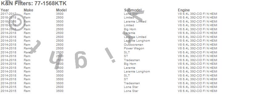 Below is an abbreviated list of applications for the Performance Induction Kit.2500, 3500, Ram, 2018, 2017, 2016, 2015, 2014