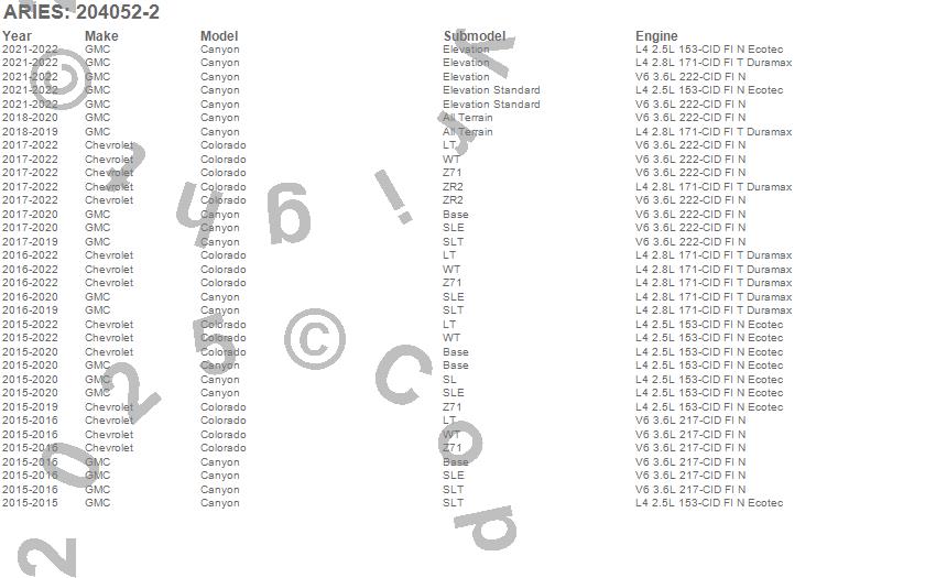 Below is an abbreviated list of applications for the 3 in. Round Side Bars.Canyon, Colorado, Chevrolet, GMC, 2022, 2021, 2020, 2019, 2018, 2017, 2016, 2015