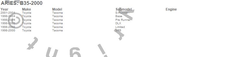 Below is an abbreviated list of applications for the Bull Bar.Tacoma, Toyota, 2004, 2003, 2002, 2001, 2000, 1999, 1998