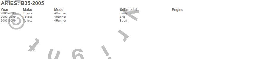 Below is an abbreviated list of applications for the Bull Bar.4Runner, Toyota, 2009, 2008, 2007, 2006, 2005, 2004, 2003