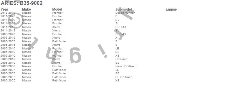 Below is an abbreviated list of applications for the Bull Bar.Frontier, Pathfinder, Xterra, Nissan, 2020, 2019, 2018, 2017, 2016, 2015, 2014, 2013, 2012, 2011, 2010, 2009, 2008, 2007, 2006, 2005