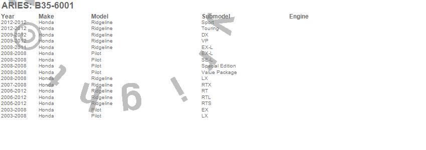 Below is an abbreviated list of applications for the Bull Bar.Pilot, Ridgeline, Honda, 2012, 2011, 2010, 2009, 2008, 2007, 2006, 2005, 2004, 2003