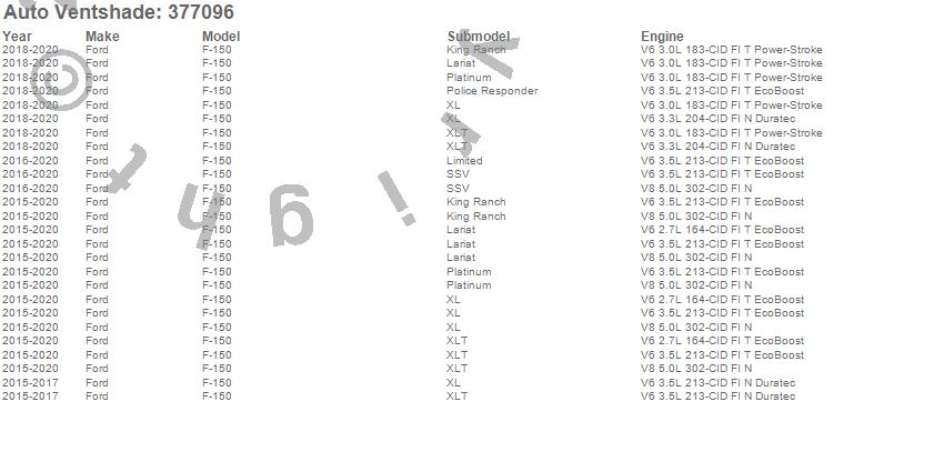Below is an abbreviated list of applications for the Aeroskin Matte Black Hood Protector.F-150, Ford, 2020, 2019, 2018, 2017, 2016, 2015
