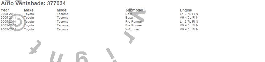 Below is an abbreviated list of applications for the Aeroskin Matte Black Hood Protector.Tacoma, Toyota, 2011, 2010, 2009, 2008, 2007, 2006, 2005