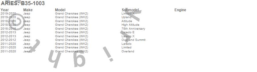 Below is an abbreviated list of applications for the Bull Bar.Grand Cherokee (WK2), Jeep, 2020, 2019, 2018, 2017, 2016, 2015, 2014, 2013, 2012, 2011