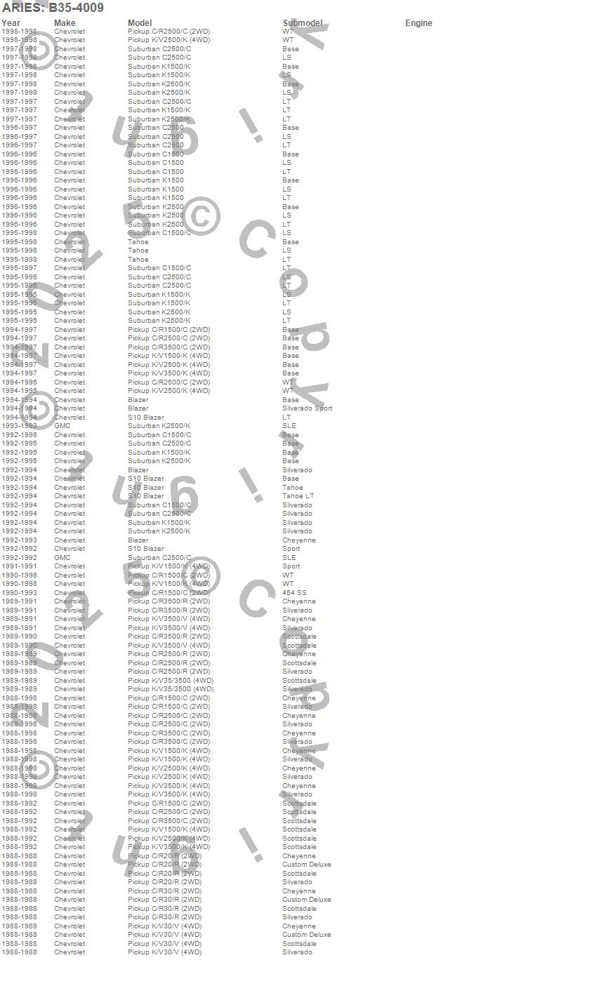 Below is an abbreviated list of applications for the Bull Bar.Blazer, C1500 Pickup, C1500 Suburban, C2500 Pickup, C2500 Suburban, C3500 Pickup, K1500 Pickup, K1500 Suburban, K2500 Pickup, K2500 Suburban, K3500 Pickup, R20 Pickup, R2500 Pickup, R30 Pickup, R3500 Pickup, S10 Blazer, Tahoe, V30 Pickup, V3500 Pickup, Chevrolet