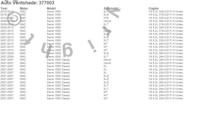 Below is an abbreviated list of applications for the Aeroskin Matte Black Hood Protector.Sierra 1500, Sierra 1500 Classic, GMC, 2013, 2012, 2011, 2010, 2009, 2008, 2007