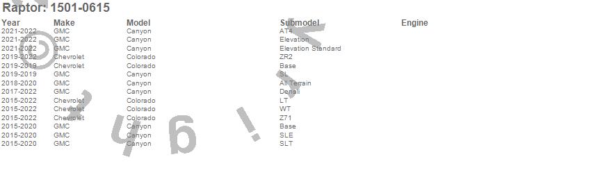 Brand: RaptorPart Number: 1501-0615Nerf/Step Bar Type: 4 in. - Rocker Panel MountUPC: 813443020838