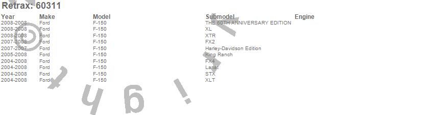 Below is an abbreviated list of applications for the RetraxONE MX Retractable Tonneau Cover.F-150, Ford, 2008, 2007, 2006, 2005, 2004