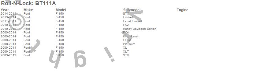 Below is an abbreviated list of applications for the Roll-N-Lock A-Series Truck Bed Cover.F-150, Ford, 2014, 2013, 2012, 2011, 2010, 2009