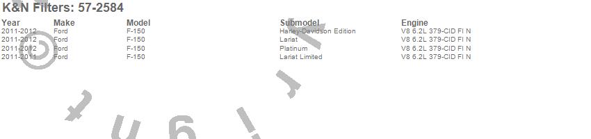 Below is an abbreviated list of applications for the Filtercharger Injection Performance Kit.F-150, Ford, 2012, 2011