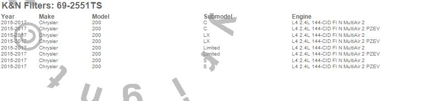 Below is an abbreviated list of applications for the Typhoon Cold Air Induction Kit.200, Chrysler, 2017, 2016, 2015