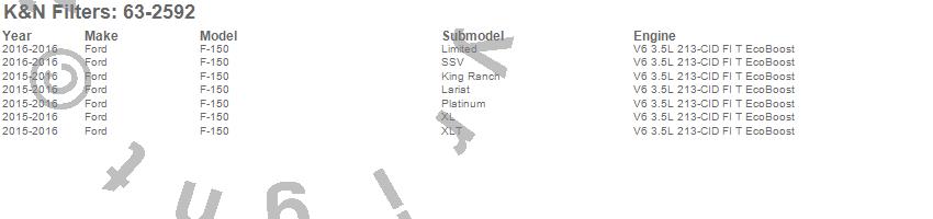 Below is an abbreviated list of applications for the 63 Series Aircharger Kit.F-150, Ford, 2016, 2015