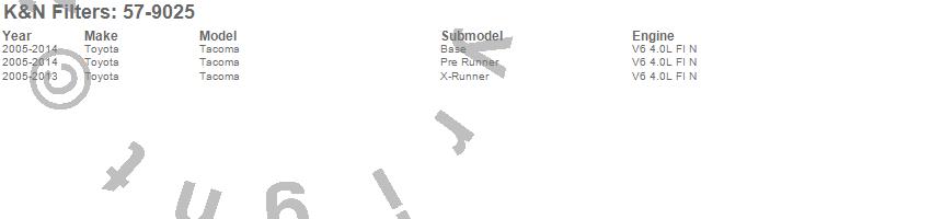 Below is an abbreviated list of applications for the 57 Series Fuel Injection Performance Kit.Tacoma, Toyota, 2014, 2013, 2012, 2011, 2010, 2009, 2008, 2007, 2006, 2005
