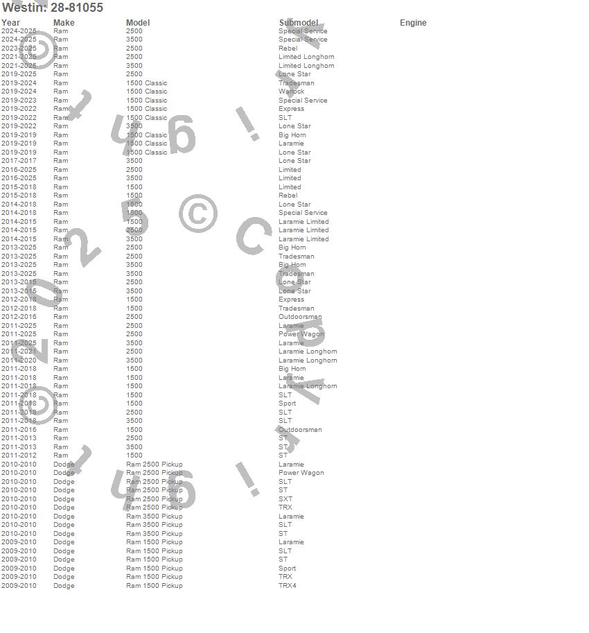 Below is an abbreviated list of applications for the Thrasher Running Boards.1500, 1500 Classic, 2500, 3500, Ram 1500, Ram 2500, Ram 3500, Dodge, Ram, 2025, 2024, 2023, 2022, 2021, 2020, 2019, 2018, 2017, 2016, 2015