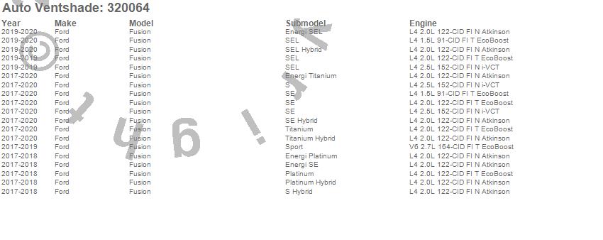 Below is an abbreviated list of applications for the Aeroskin Smoke Hood Protector.Fusion, Ford, 2020, 2019, 2018, 2017