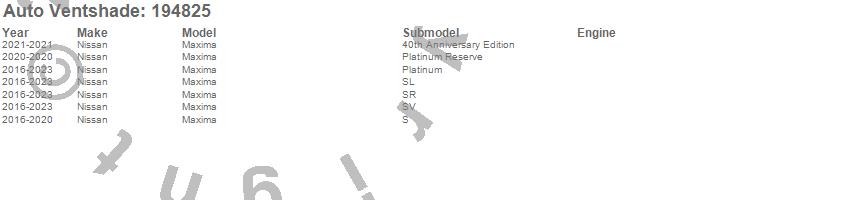 Below is an abbreviated list of applications for the Ventvisor In-Channel Deflector 4 pc..Maxima, Nissan, 2023, 2022, 2021, 2020, 2019, 2018, 2017, 2016