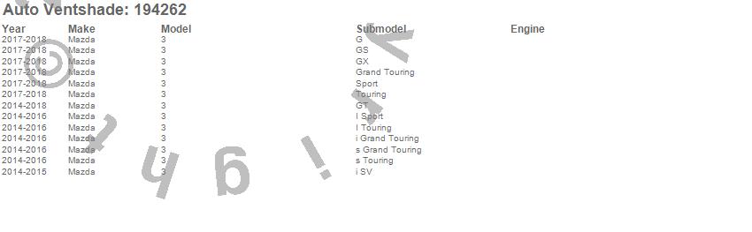 Below is an abbreviated list of applications for the Ventvisor In-Channel Deflector 4 pc..3, Mazda, 2018, 2017, 2016, 2015, 2014