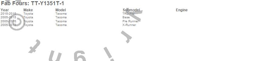Brand: Fab FoursPart Number: TT-Y1351T-1Spare Tire Carrier Type: 2 Stage Black Powder CoatedUPC: 005810104603
