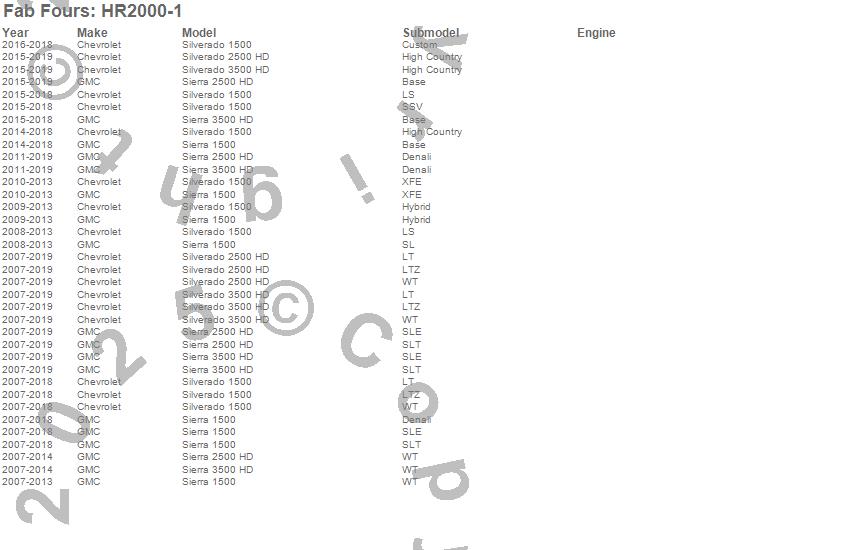 Below is an abbreviated list of applications for the Headache Rack.Sierra 1500, Sierra 2500 HD, Sierra 3500 HD, Silverado 1500, Silverado 2500 HD, Silverado 3500 HD, Chevrolet, GMC, 2019, 2018, 2017, 2016, 2015, 2014, 2013, 2012, 2011, 2010, 2009, 2008