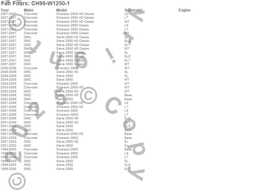 Below is an abbreviated list of applications for the Heavy Duty Rear Bumper.Sierra 2500, Sierra 2500 HD, Sierra 2500 HD Classic, Sierra 3500, Sierra 3500 Classic, Silverado 2500, Silverado 2500 HD, Silverado 2500 HD Classic, Silverado 3500, Silverado 3500 Classic, Chevrolet, GMC, 2007, 2006, 2005, 2004, 2003, 2002, 2001, 2000