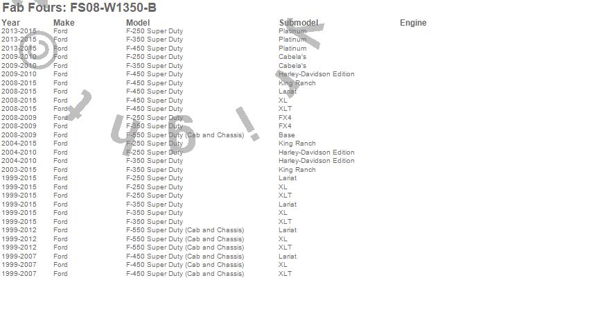 Below is an abbreviated list of applications for the Heavy Duty Rear Bumper.F-250 Super Duty, F-350 Super Duty, F-450 Super Duty, F-550 Super Duty, Ford, 2015, 2014, 2013, 2012, 2011, 2010, 2009, 2008, 2007, 2006, 2005, 2004, 2003, 2002, 2001