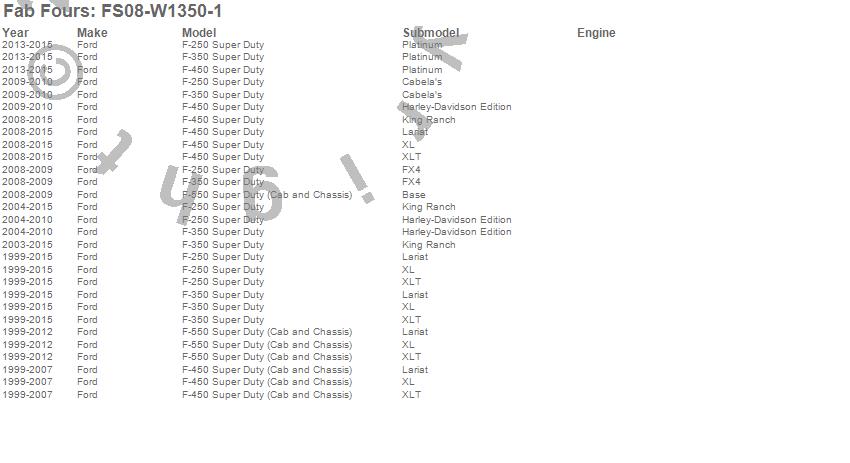 Below is an abbreviated list of applications for the Heavy Duty Rear Bumper.F-250 Super Duty, F-350 Super Duty, F-450 Super Duty, F-550 Super Duty, Ford, 2015, 2014, 2013, 2012, 2011, 2010, 2009, 2008, 2007, 2006, 2005, 2004, 2003, 2002, 2001