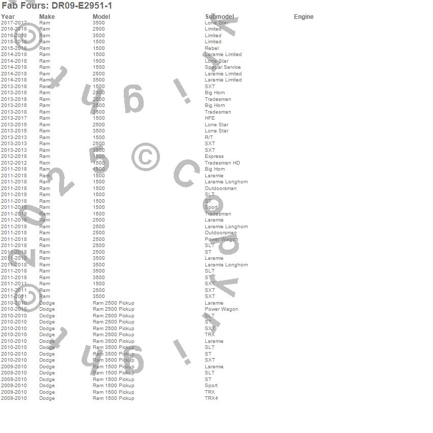 Below is an abbreviated list of applications for the Premium Rear Bumper.1500, 2500, 3500, Ram 1500, Ram 2500, Ram 3500, Dodge, Ram, 2018, 2017, 2016, 2015, 2014, 2013, 2012, 2011, 2010, 2009