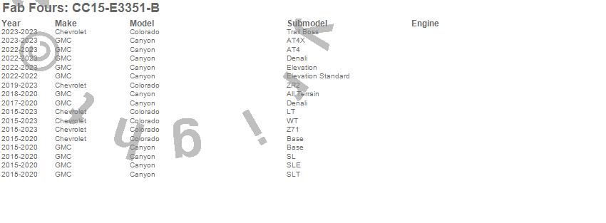Below is an abbreviated list of applications for the Vengeance Rear Bumper.Canyon, Colorado, Chevrolet, GMC, 2023, 2022, 2021, 2020, 2019, 2018, 2017, 2016, 2015