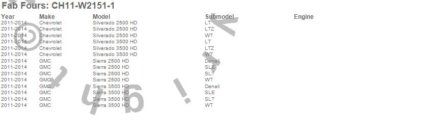 Below is an abbreviated list of applications for the Heavy Duty Rear Bumper.Sierra 2500 HD, Sierra 3500 HD, Silverado 2500 HD, Silverado 3500 HD, Chevrolet, GMC, 2014, 2013, 2012, 2011