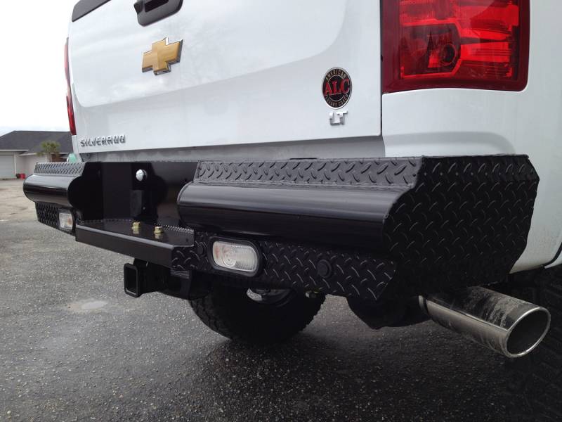 Buy this Black Steel Ranch Rear Bumper Fab Fours CH11-T2150-1 2 Stage Black Powder Coated here at SVCustoms.com an authorized Fab Fours Bumper- Rear dealer and distributor.