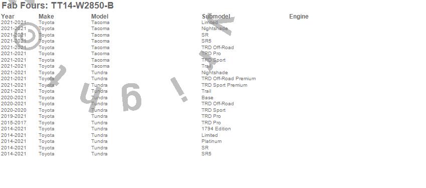 Below is an abbreviated list of applications for the Heavy Duty Rear Bumper.Tacoma, Tundra, Toyota, 2021, 2020, 2019, 2018, 2017, 2016, 2015, 2014