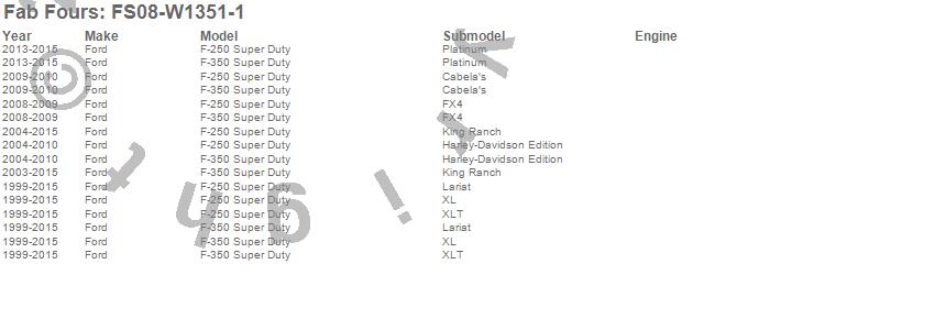 Below is an abbreviated list of applications for the Heavy Duty Rear Bumper.F-250 Super Duty, F-350 Super Duty, Ford, 2015, 2014, 2013, 2012, 2011, 2010, 2009, 2008, 2007, 2006, 2005, 2004, 2003, 2002, 2001, 2000, 1999