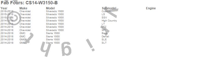 Brand: Fab FoursPart Number: CS14-W3150-BBumper- Rear Type: Uncoated/Paintable - Incl. 0.75 in. D-Ring Mount - [AWSL]UPC: 005810107918