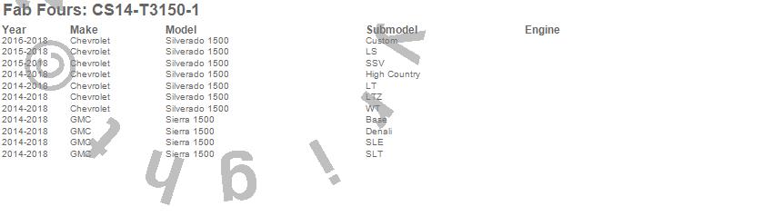 Brand: Fab FoursPart Number: CS14-T3150-1Bumper- Rear Type: 2 Stage Black Powder CoatedUPC: 005810108526