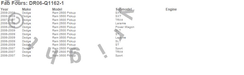 Below is an abbreviated list of applications for the Elite Front Bumper.Ram 2500, Ram 3500, Dodge, 2009, 2008, 2007, 2006