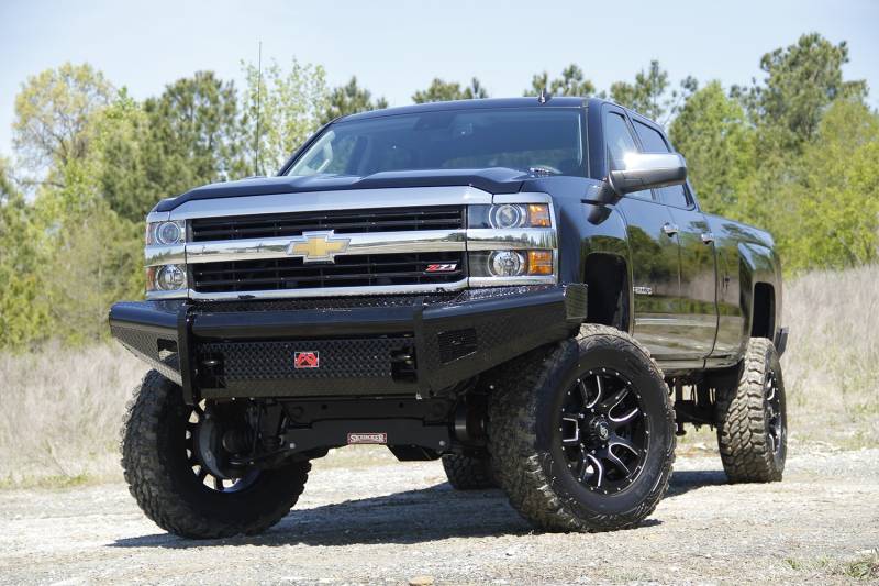 Buy this Black Steel Front Ranch Bumper Fab Fours CH11-S2761-1 2 Stage Black Powder Coated - w/o Full Grill Guard - Incl. Light Cut-Outs here at SVCustoms.com an authorized Fab Fours Bumper- Front dealer and distributor.