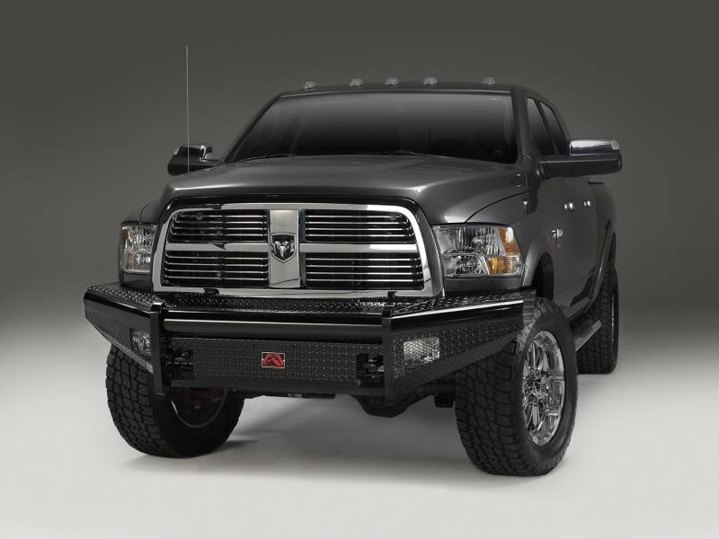 Buy this Black Steel Front Ranch Bumper Fab Fours DR10-S2961-1 2 Stage Black Powder Coated - w/o Full Grill Guard - Incl. Light Cut-Outs here at SVCustoms.com an authorized Fab Fours Bumper- Front dealer and distributor.