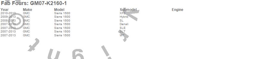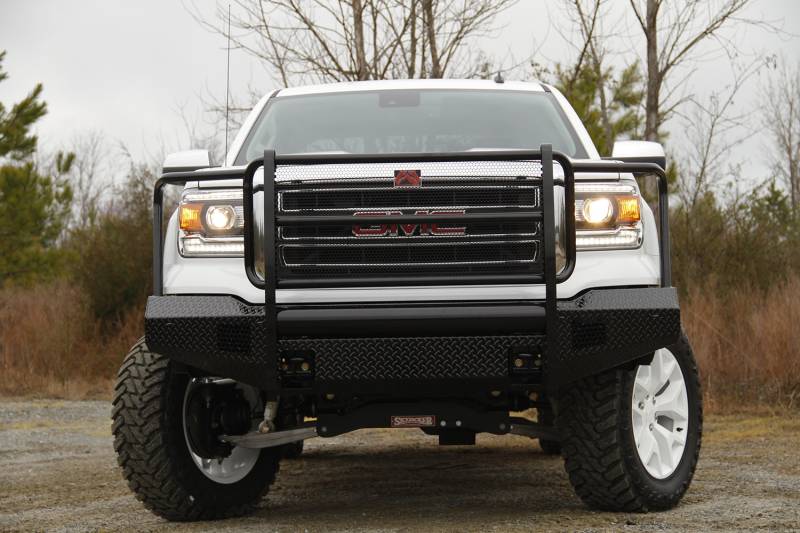 Brand: Fab FoursPart Number: GM07-K2160-1Bumper- Front Type: 2 Stage Black Powder Coated - w/Full Grill Guard - Incl. Light Cut-OutsUPC: 005810104795