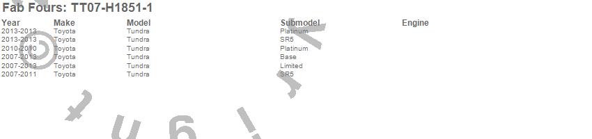 Brand: Fab FoursPart Number: TT07-H1851-1Bumper- Front Type: 2 Stage Black Powder Coated - w/o Grill Guard - Incl. 1 in. D-Ring Mounts/Light Cut-Outs w/Hella 90mm Fog Lamps And 60mm Turn SignalsUPC: 005810101138