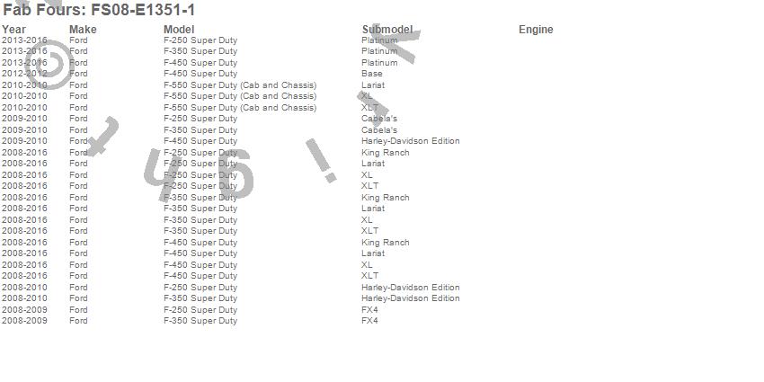 Below is an abbreviated list of applications for the Vengeance Front Bumper.F-250 Super Duty, F-350 Super Duty, F-450 Super Duty, F-550 Super Duty, Ford, 2016, 2015, 2014, 2013, 2012, 2011, 2010, 2009, 2008