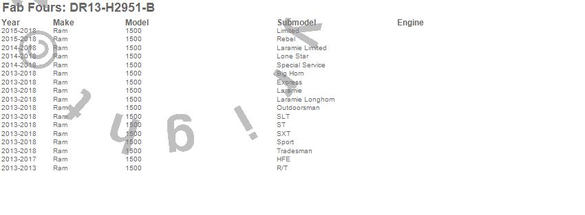 Brand: Fab FoursPart Number: DR13-H2951-BBumper- Front Type: Uncoated/Paintable - w/o Grill Guard - [AWSL]UPC: 005810109059