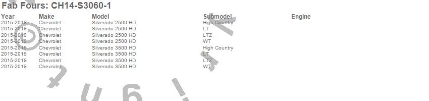 Brand: Fab FoursPart Number: CH14-S3060-1Bumper- Front Type: 2 Stage Black Powder Coated - w/Full Grill Guard And Tow HooksUPC: 005810108045